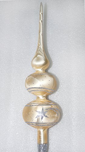 Grote kerstboompiek ca. 35 cm in “Ice champagne zilver” Komet voor de iets grotere kerstboom. Bij deze decoratie hebben we ook een grote kerstboomballen set, bijpassende glazen vogels met echte veren, glazen dennenappels en 12-delig. Set met