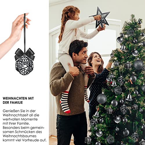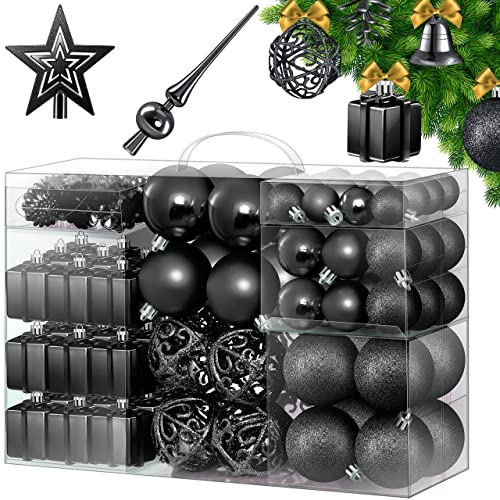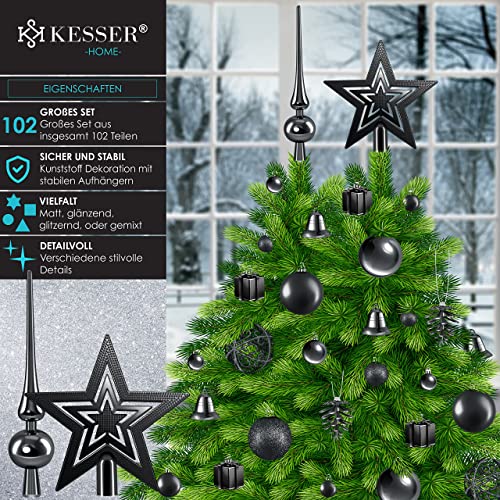 KESSER® Kerstballen, 102-delige set, zwart, met boompunt, kunststof kerstballen, onbreekbaar, met plastic kerstballen, box, kerstdecoratie en kerstboomversiering