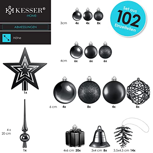 Specificaties: KESSER® Kerstballen, 102-delige set, zwart, met boompunt, kunststof kerstballen, onbreekbaar, met plastic kerstballen, box, kerstdecoratie en kerstboomversiering