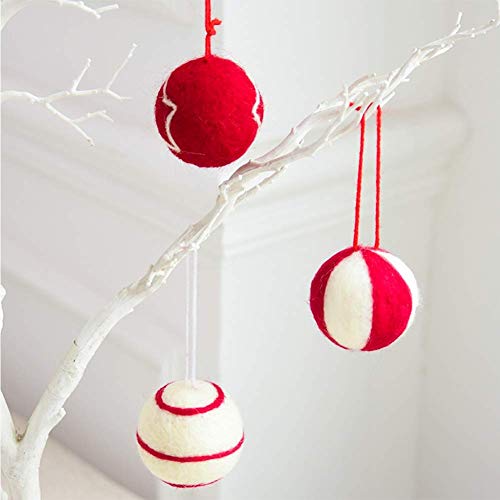 Specificaties: Pack van 6-3cm Mini kerstboom kerstballen, wol vilt versierd kerstballen, hangers geschenken (kleur: 6cm-B)