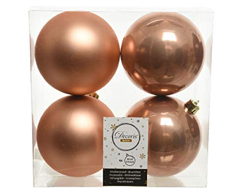 Met de bronskleurige kerstballen kun je je boom, kerstversieringen, slingers en slingers uniek maken. Betover je kerstdecoratie met deze kleurrijke ballen. De set bestaat uit 4 ballen van onbreekbaar kunststof. De set bestaat uit 4 ballen: 4 ballen (2 ballen mat en 2 glanzend). Kleur: brons onbreekbare kunststof. Individuele bolgrootte: 10 cm. Onbreekbare decoratie van kunststof.
