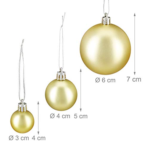 Specificaties: Gouden kerstballen: 100-delige set (mat, glanzend, glinsterend) 3, 4 & 6 cm
