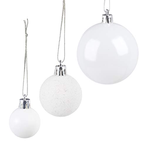Witte kerstballen, set van 100 (mat, glanzend, glinsterend) – 3, 4 & 6 cm