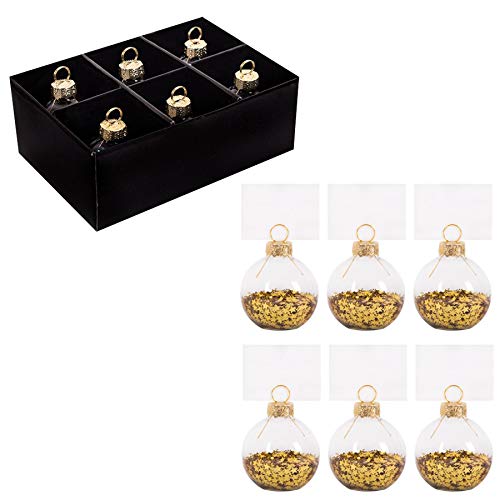 Ontwerp: Helder glas gevuld met mini sterren Glazen plaats kaarthouders Pack van 6 kerstballen hebben een vlakke basis waardoor ze alleen kunnen staan Elke kerstbal heeft een ring top om een kaart binnen te sleuf Ongeveer Maat: 40mm (4cm) Geweldige finishing touch aan uw kersttafel Inclusief 6 Gratis blanco plaats kaarten