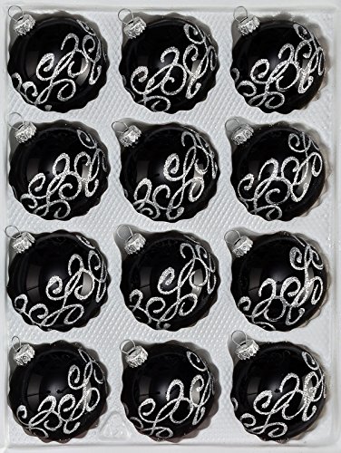 Specificaties: Set van 12 glazen kerstballen in “hoogglans-zwart-zilveren ornamenten” nieuwigheid – kerstballen – kerstversiering kerstboomversiering
