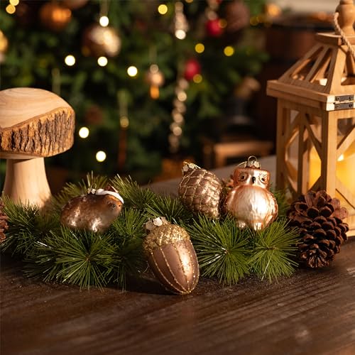Valery Madelyn 5 stks Kerst Glazen Kerstballen Pack, Woodland Koper en Gouden Kerstballen Ornamenten voor Kerstboom Decoratie