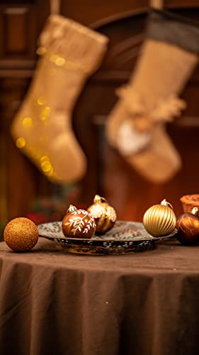 【Uniek design】 Onze decoratieve feestballen zijn koper, goud en brons, de klassieke en vrolijke kerstkleur. Met glitter op het oppervlak schitteren kerstballen en zijn ze een blikvanger. De beste keuze om vreugde toe te voegen aan uw festival en feesten