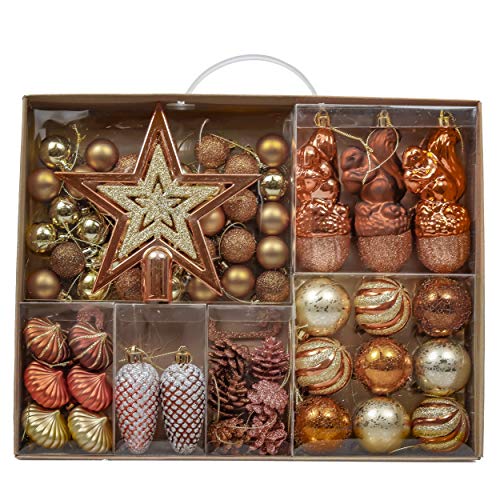 【Onbreekbare kerstballen set】 Dit pakket bevat 70 stuks koperen en gouden kerstballen ornamenten in PVC en Kraft doos. Multi-afwerking van glanzend, mat, glitter, mat en gevlekt zal uw kerstboomversiering verrijken.