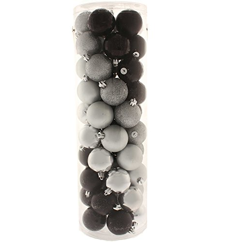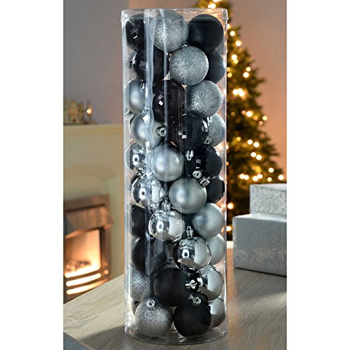 WeRChristmas Onbreekbare kerstballen, op elkaar afgestemde set met 50 stuks zilver/zwart
