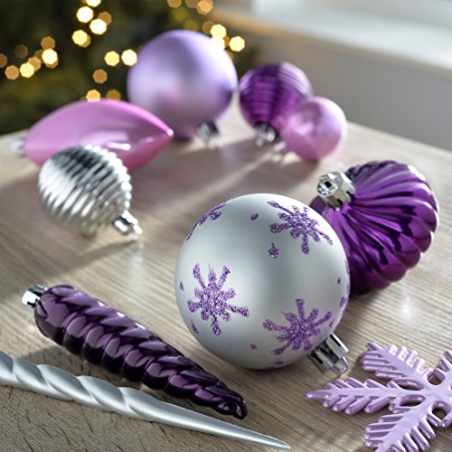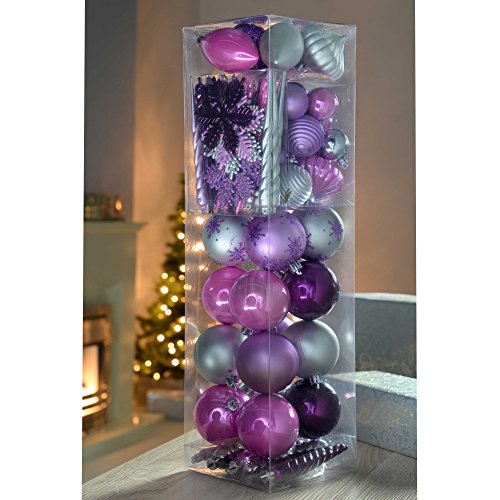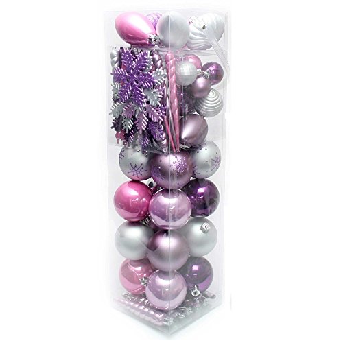 WeRChristmas Plastic kerstballenset, onbreekbaar, 72 stuks paars, roze/zilver