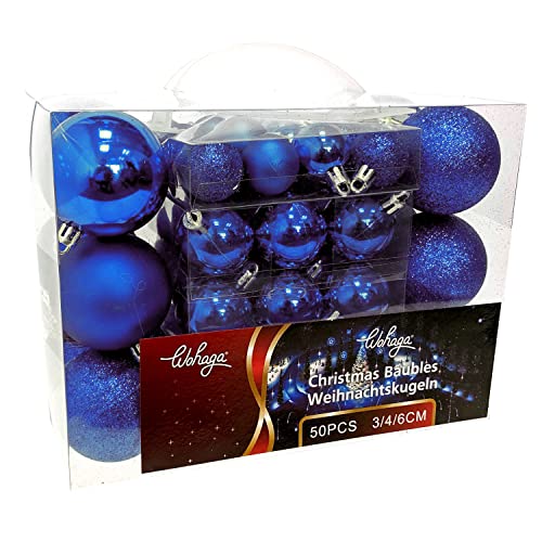 Specificaties: Blauwe plastic kerstballen – 50 stuks