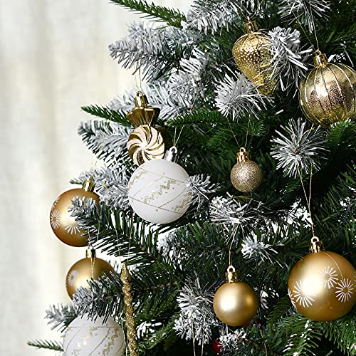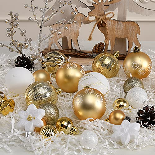YILEEY Kerstballen, kerstdecoratieset, kunststof kerstballen, doos met ophanghaakjes, plastic, onbreekbaar, kerstboomversiering, herbruikbaar, wit en goud, 88 stuks, 23 kleuren