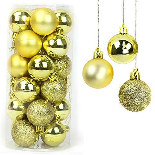 Yisscen Kerstballen, boomversiering, kerstballen, decoratieve ballen voor Kerstmis, mat glanzend, glinsterende decoratieve ballen, kerstballen voor Kerstmis, bruiloftsfeest, decoratie, 24 stuks (goud)