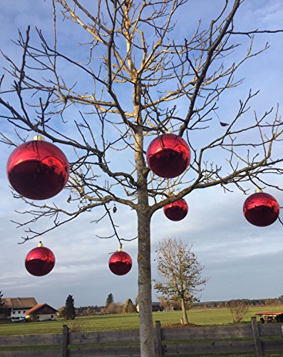 Deze prachtige rood glanzende zeer grote kerstbal met een diameter van 25 cm is gemaakt van kunststof en is ideaal voor gebruik buitenshuis (natuurlijk ook voor binnenshuis). Omdat de hoogwaardige kerstbal ook weerbestendig en vorstbestendig is, kun je de goudglanzende ballen gerust buiten laten hangen. Je vindt geen andere zo grote kerstballen. Op een boom of in een mooie grote schaal met dennentakken een blikvanger. De kerstbal heeft een gouden hanger en een stalen ring. Je zult vele jaren plezier hebben van deze bol, of het is een leuk cadeau in de adventstijd. Deze bol is ook verkrijgbaar in zilver, goud, roze en blauw.