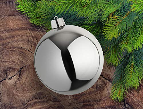 Deze prachtige zilverkleurige zeer grote kerstbal met een diameter van 25 cm is gemaakt van kunststof en is ideaal voor gebruik buitenshuis (natuurlijk ook voor binnenshuis). Omdat de hoogwaardige kerstbal ook weerbestendig en vorstbestendig is, kun je de zilverglanzende ballen gerust buiten laten hangen. Je vindt geen andere zo grote kerstballen. Op een boom of in een mooie grote schaal met dennentakken een blikvanger. De kerstbal heeft een zilveren hanger en een stalen ring. Je zult vele jaren plezier hebben van deze bol, of het is een leuk cadeau in de adventstijd. Deze bol is ook verkrijgbaar in zilver, zilver, roze en blauw.